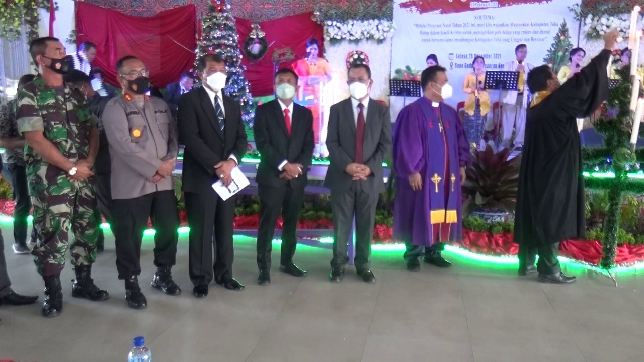 Usai ibadah Natal, Bupati Toba Ir. Poltak Sitorus dalam sambutannya menyatakan perayaan Natal kali ini menjadi momen bagi kita dalam Cinta Kasih Kristus Yang Menggerakan Persaudaraan, serta menjadi pedoman kita di kehidupan sehari-hari dimana rasa persaudaraan adalah hal yang sangat penting dalam menuju suatu tujuan dalam membangun Kabupaten Toba menjadi Unggul dan Bersinar.