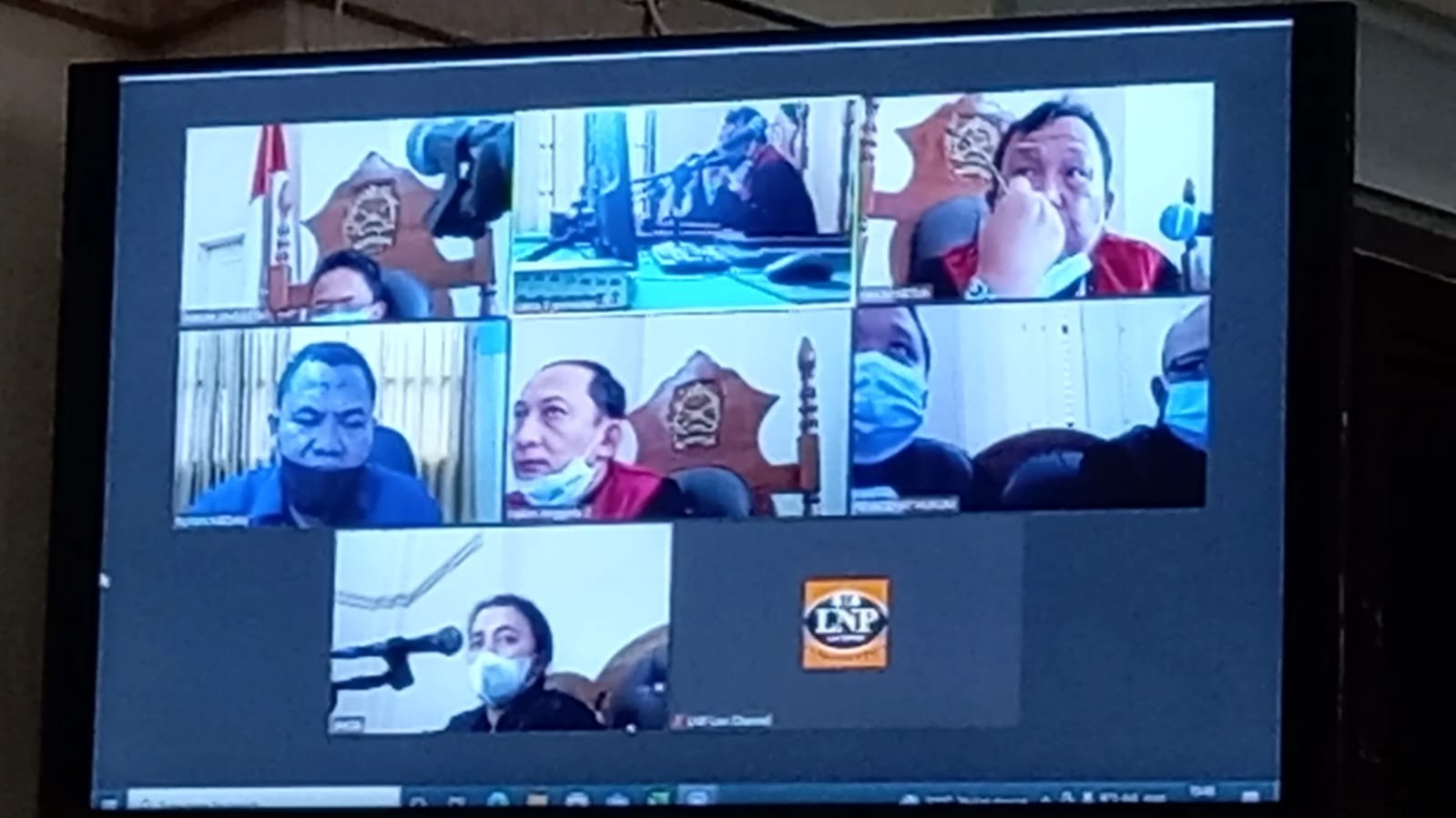 Ket Foto: Terdakwa, Wildan Aswan Tanjung saat mendengarkan putusan melalui virtual.