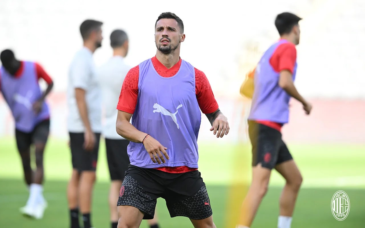 | Rafael Leao berfoto bersama para tifosi AC Millan saat latihan hari ini Senin (31/7/2023) |